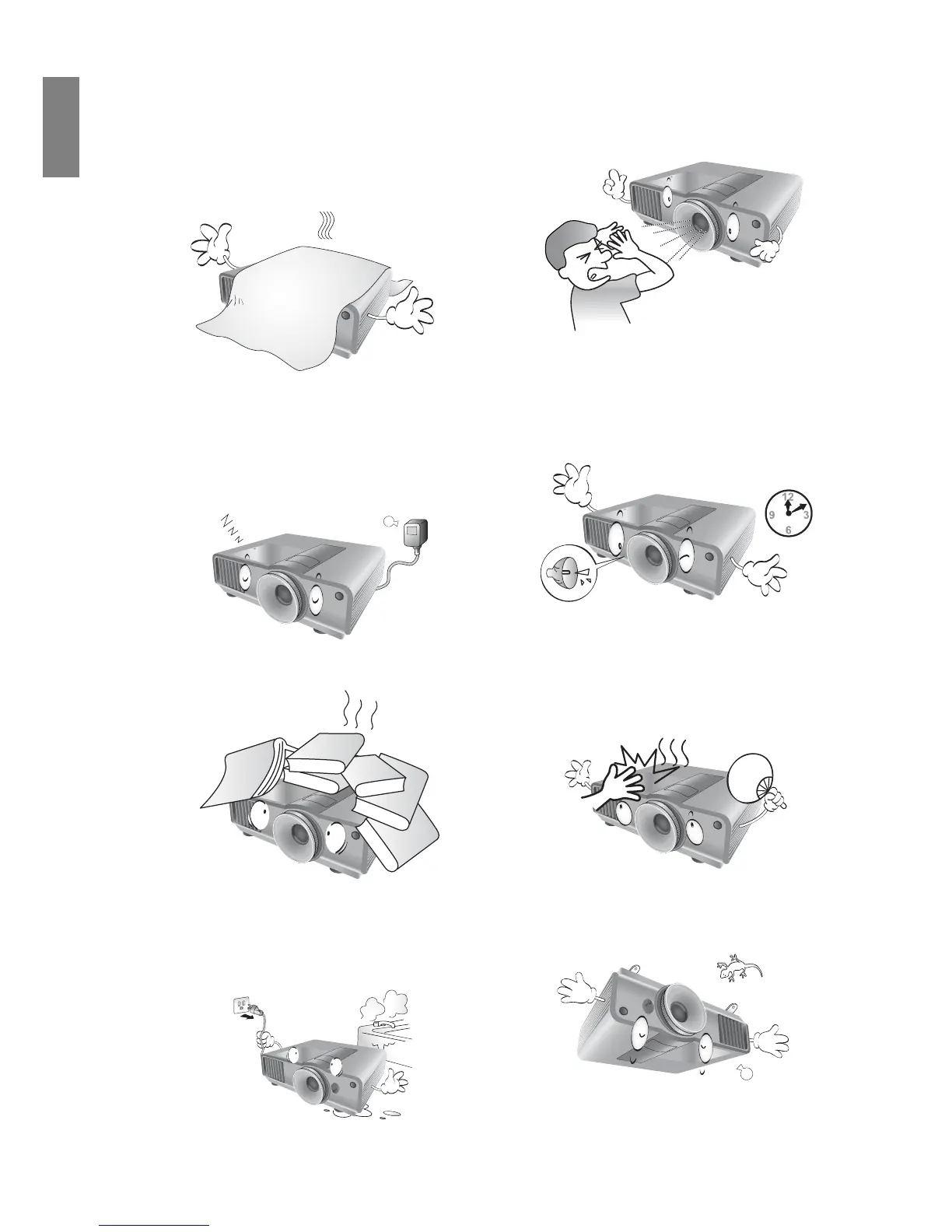 7. Do not step on the projector or place any objects