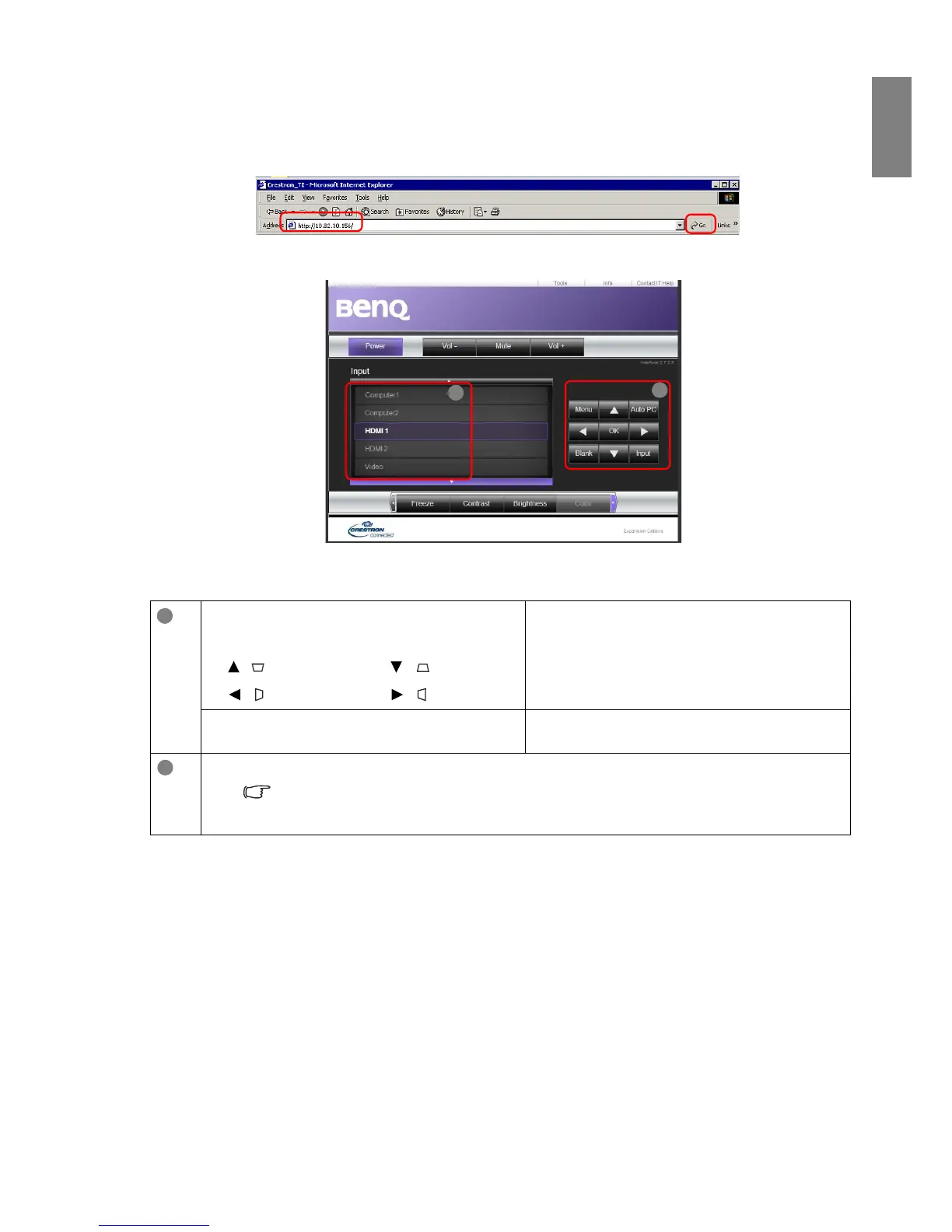 1. Enter the address of the projector in the address bar of your browser and click Go.