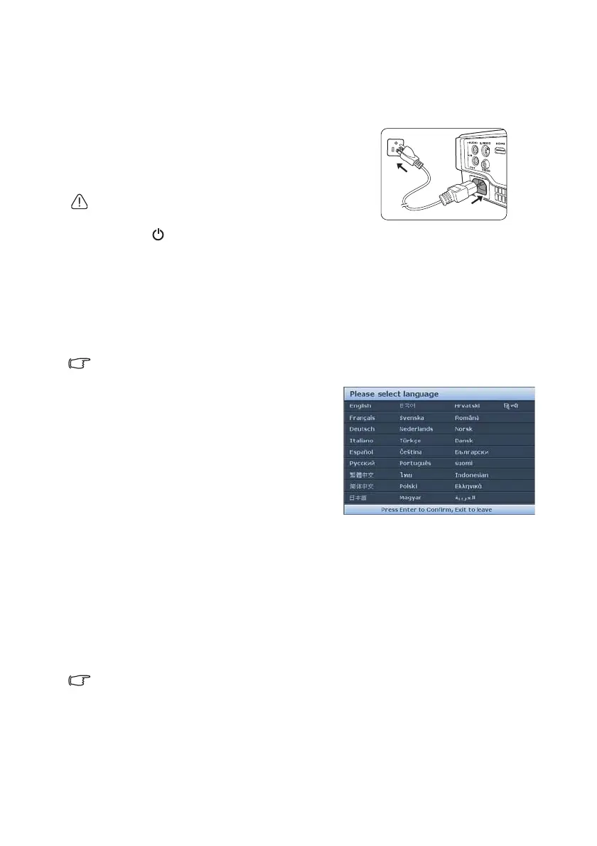 Starting up the projector