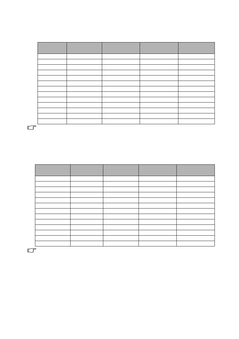 **Supported timing for 3D signal in Frame Packing, Top Bottom and Side by Side formats.
