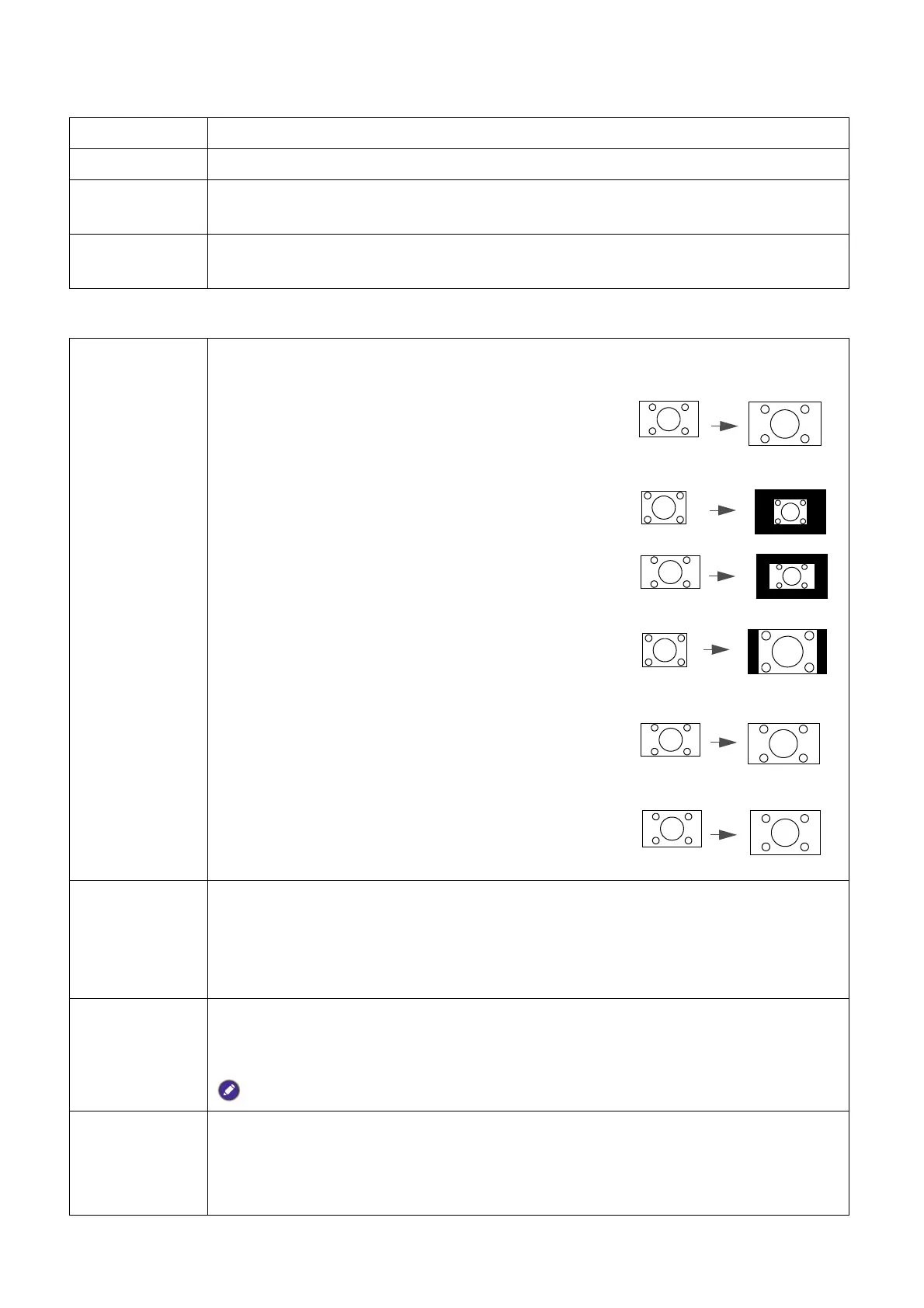 screen remains filled and geometrically accurate. Setting 0 means the picture is