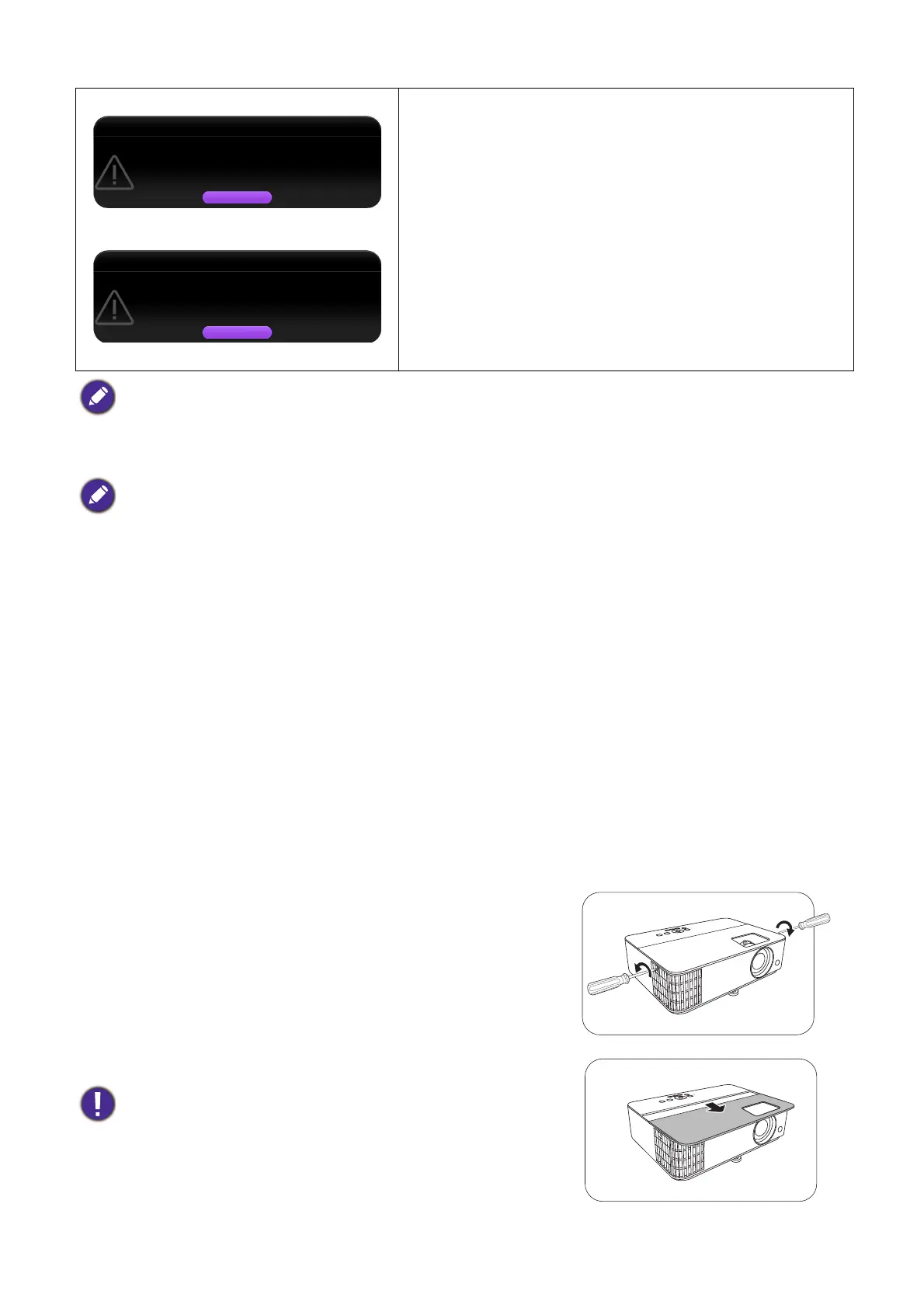 side of the projector until the lamp cover loosens.