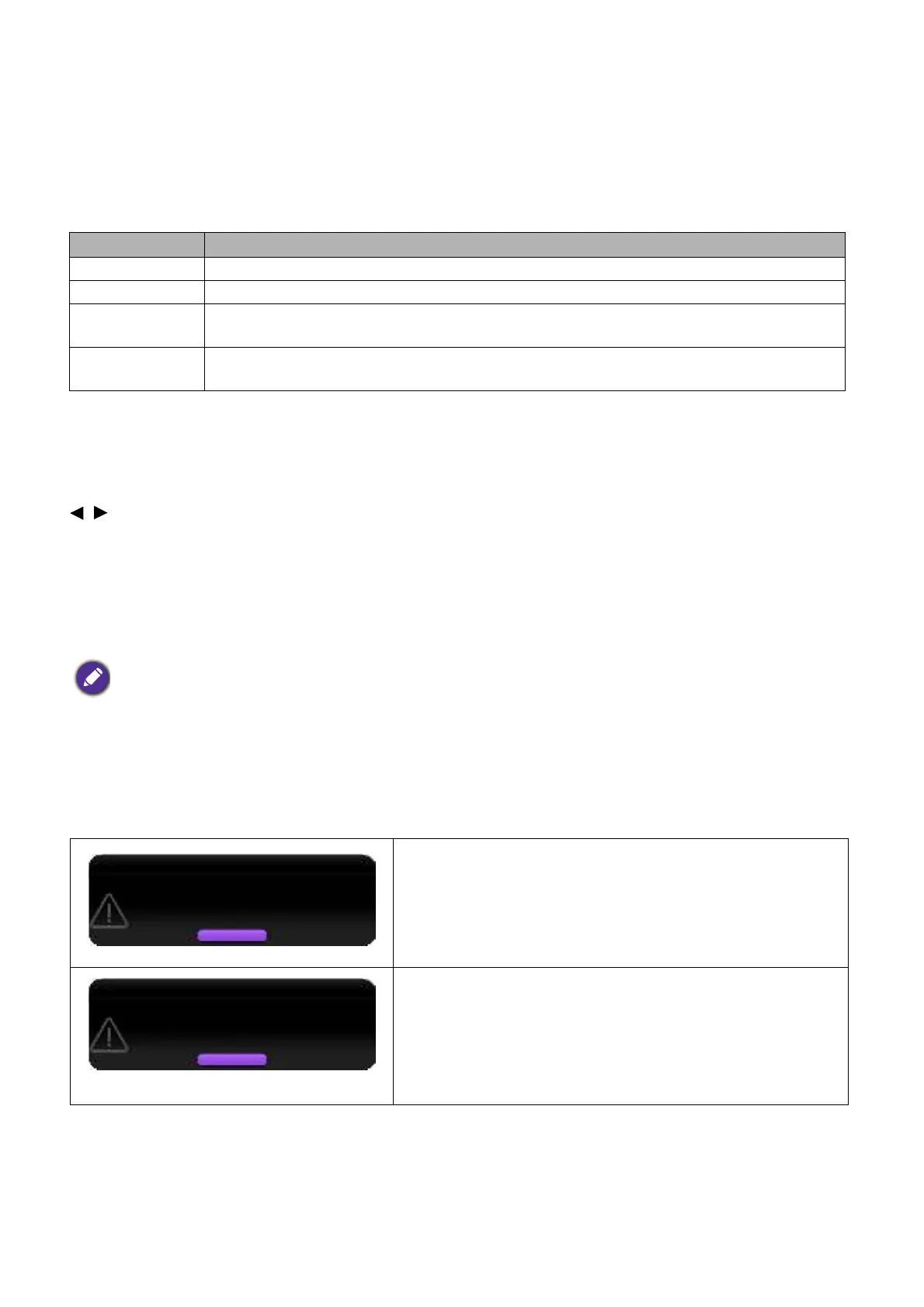 The following Lamp warning displays will remind you to change the lamp.