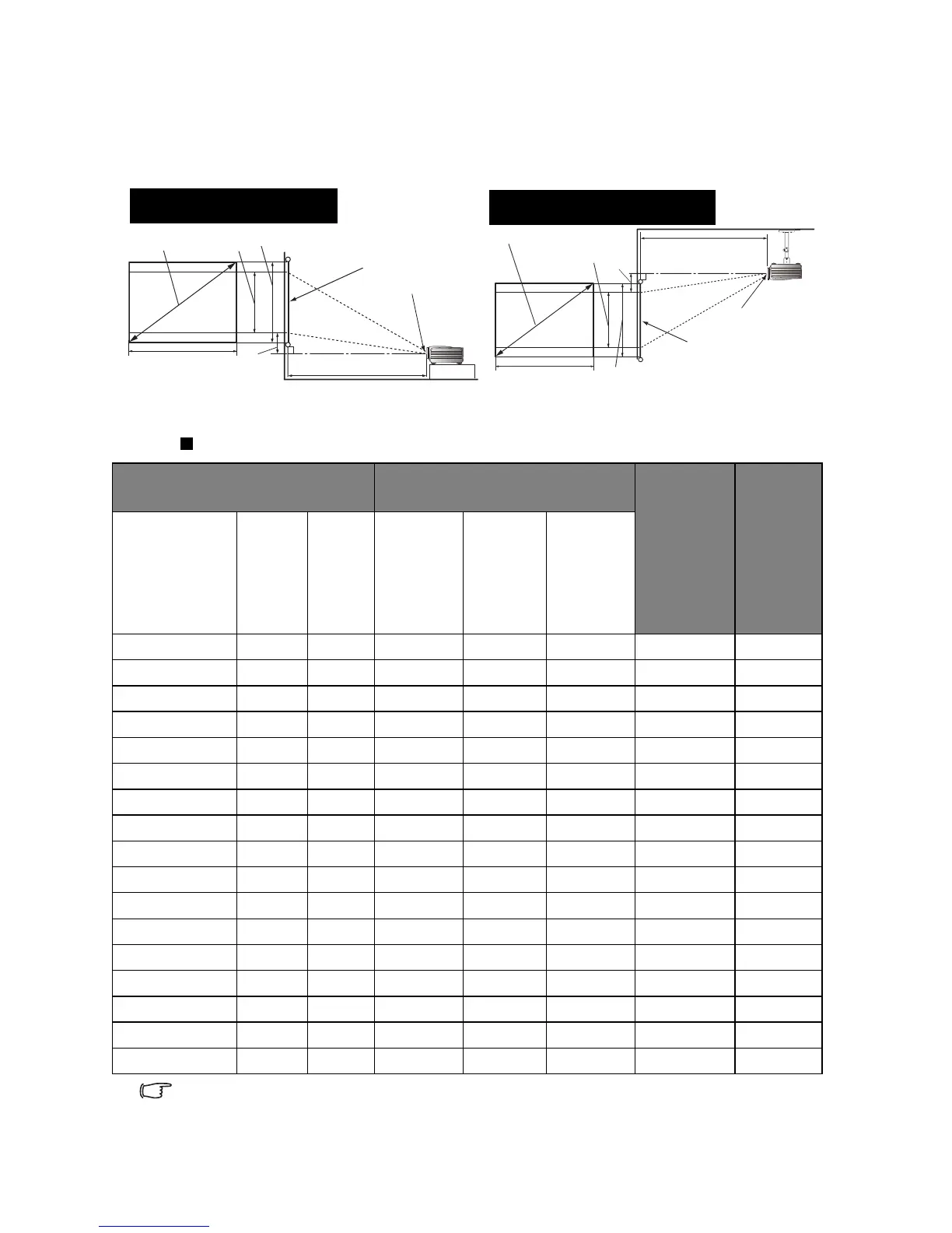allowance for this projector's optical characteristics. This will help you determine the exact mounting position