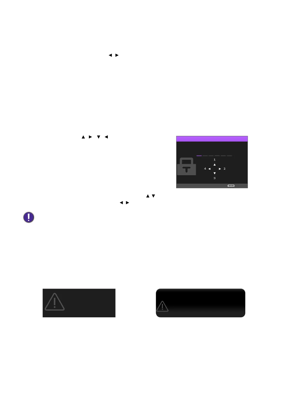 • Once a password has been set and the power on lock is activated, the projector cannot be used unless the