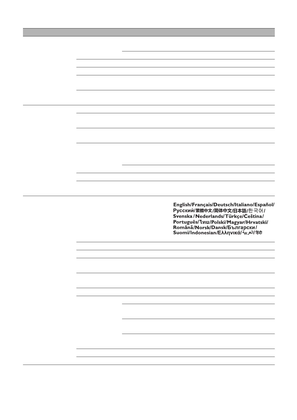 Main menu Sub-menu Options