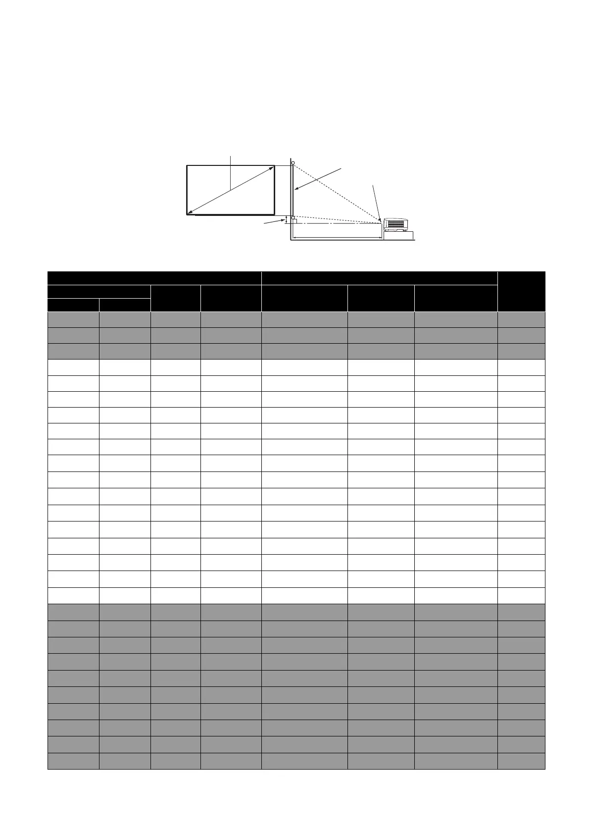 • The screen aspect ratio is 16:9 and the projected picture is in a 16:9 aspect ratio