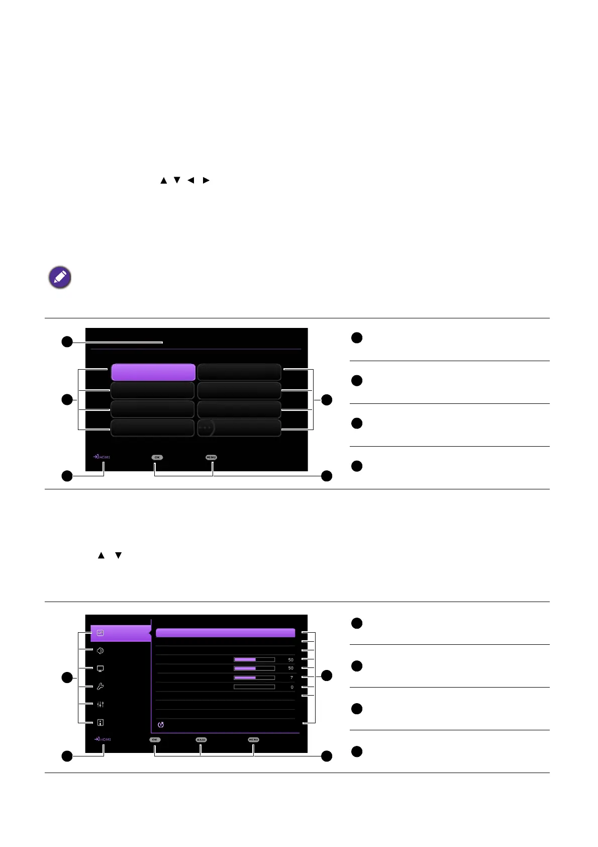 • Advanced OSD menu: provides full menu functions. (See Advanced Menu on page 26)