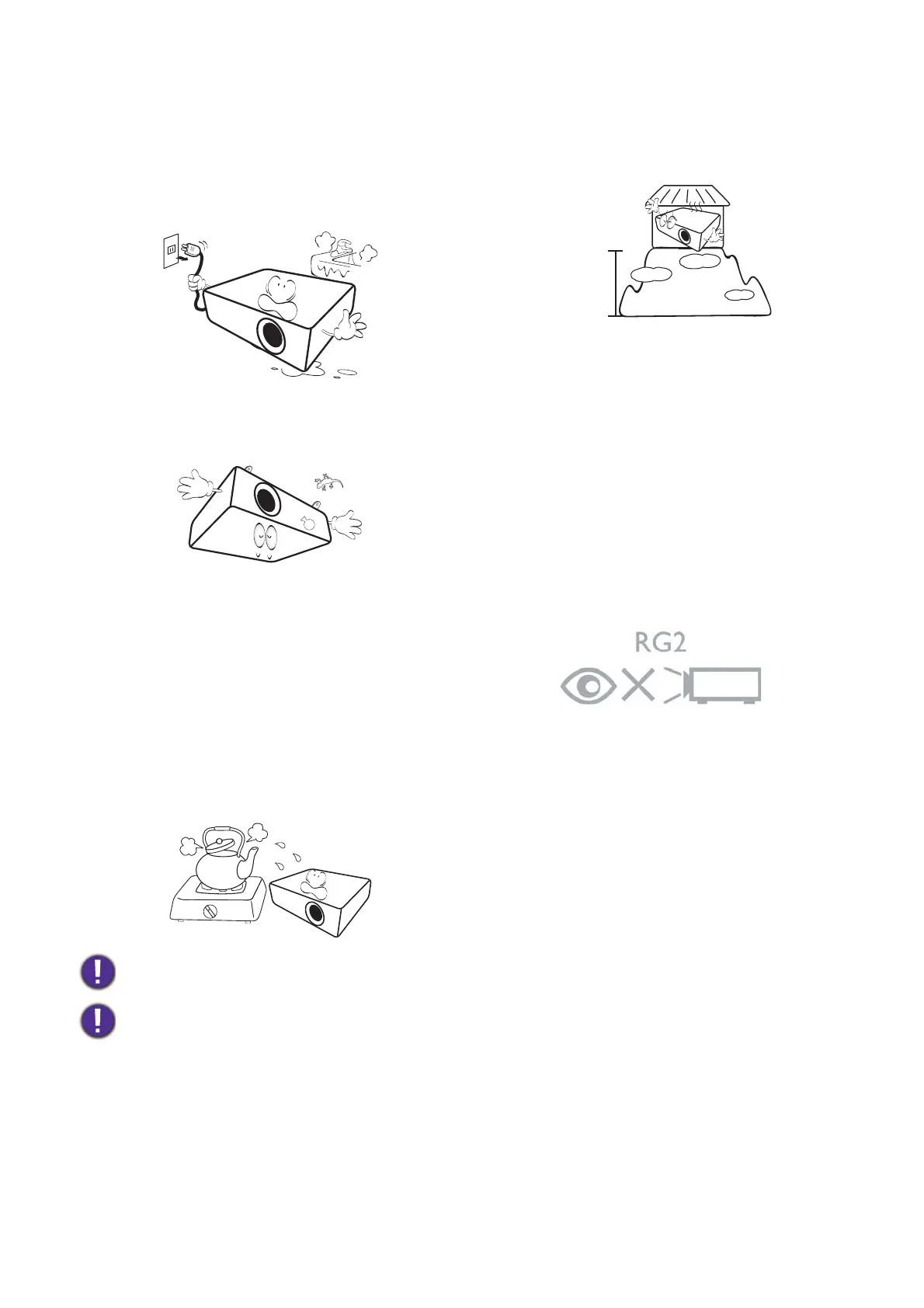 To avoid damaging the DLP chips, never aim a high-power laser beam into the projection lens.