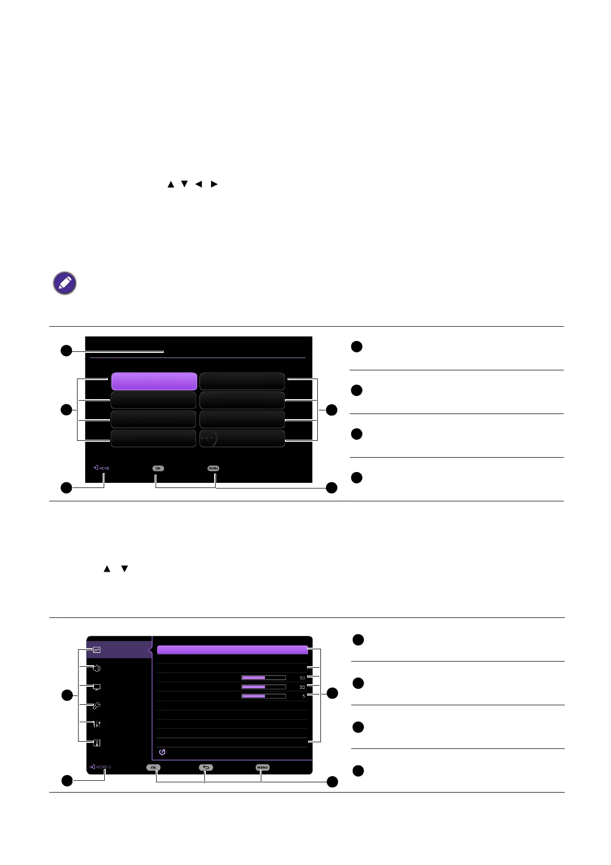 The projector is equipped with 2 types of On-Screen Display (OSD) menus for making various
