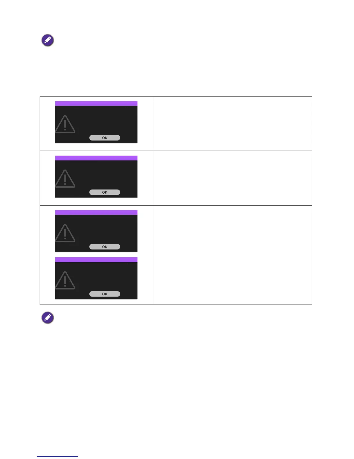 The following Lamp warning displays will remind you to change the lamp.