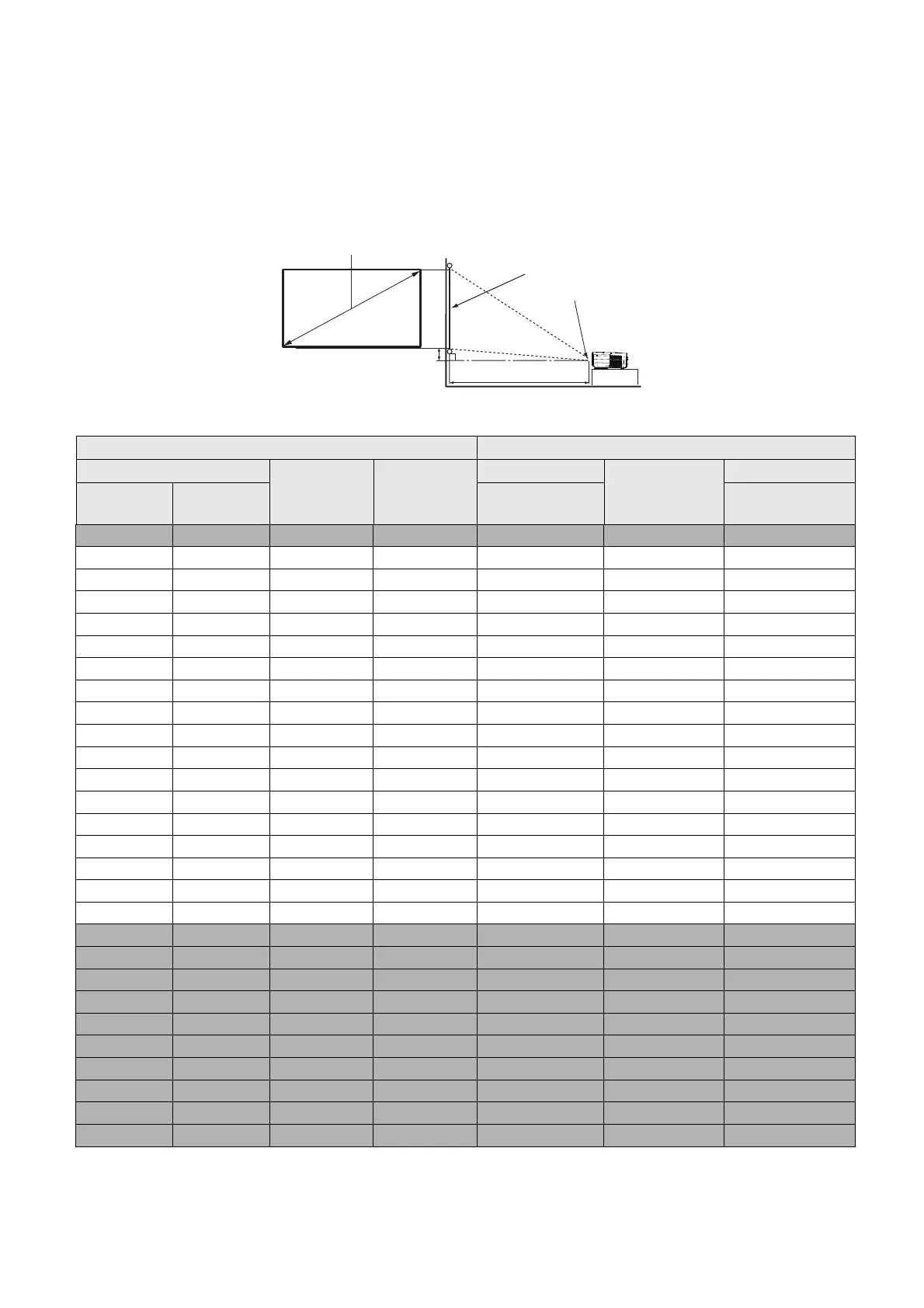 For example, if you are using a 120-inch screen, the recommended projection distance is 3454 mm.