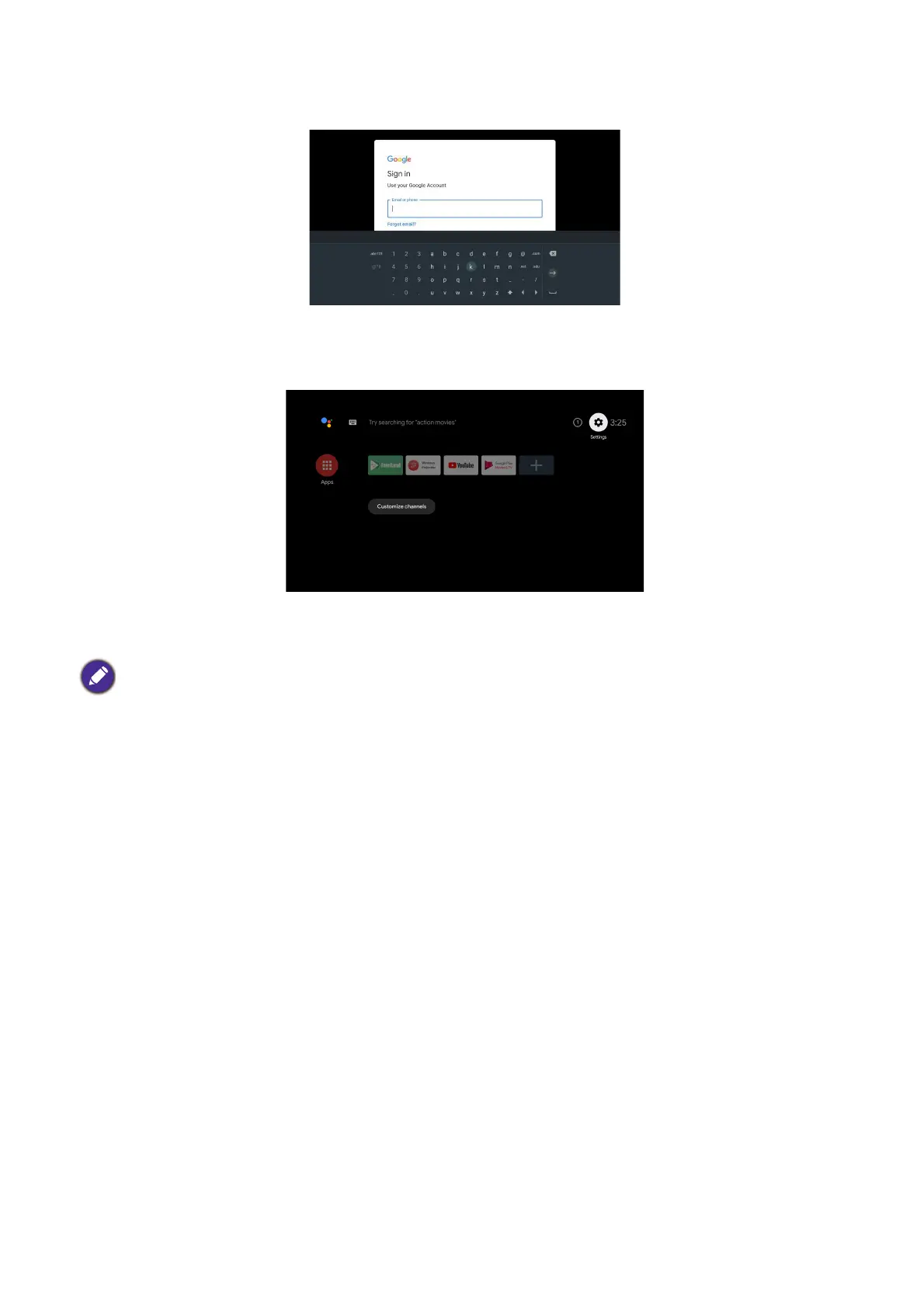 BenQ TK850i - Operation; Displaying Android TV Home Screen