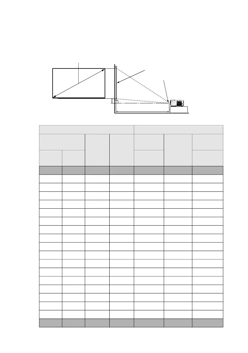 • The screen aspect ratio is 16:9 and the projected picture is in a 16:9 aspect ratio