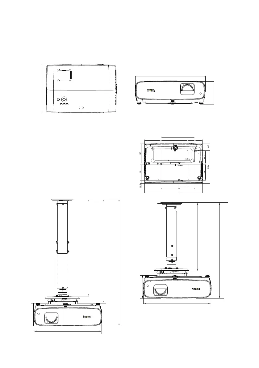 BenQ TK860 - Dimensions; Projector dimensions; Ceiling;Wall mount installation diagram