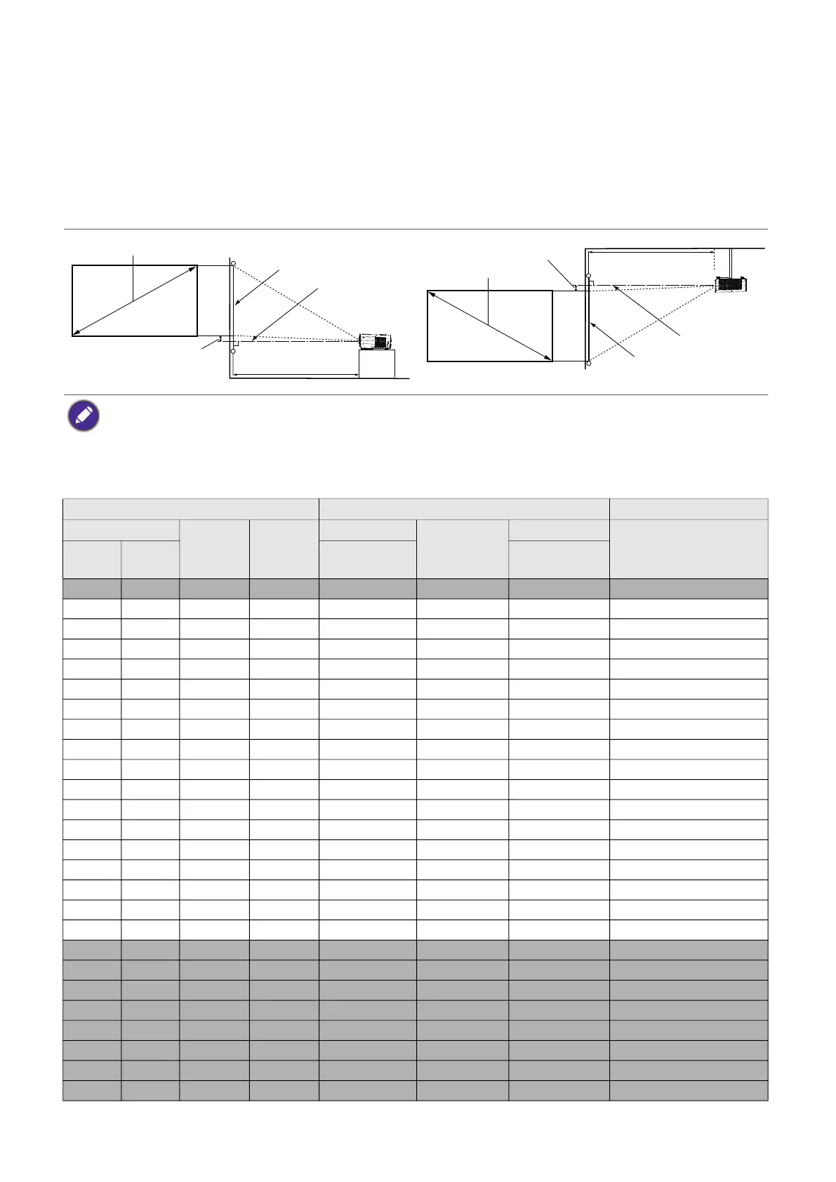 • Due to the lens optical characteristics, every projector has its vertical offset ratio. The vertical offset value