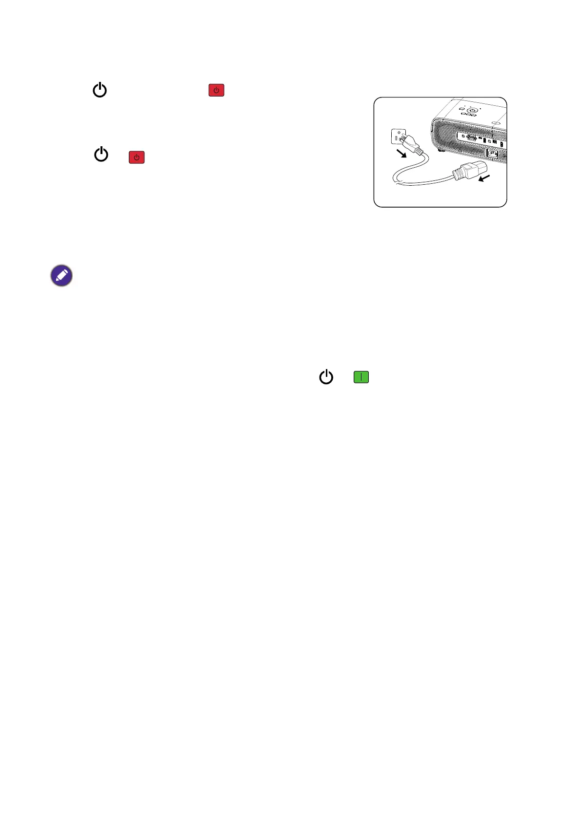 • Avoid turning on the projector immediately after turning it off as excessive heat may shorten lamp life.