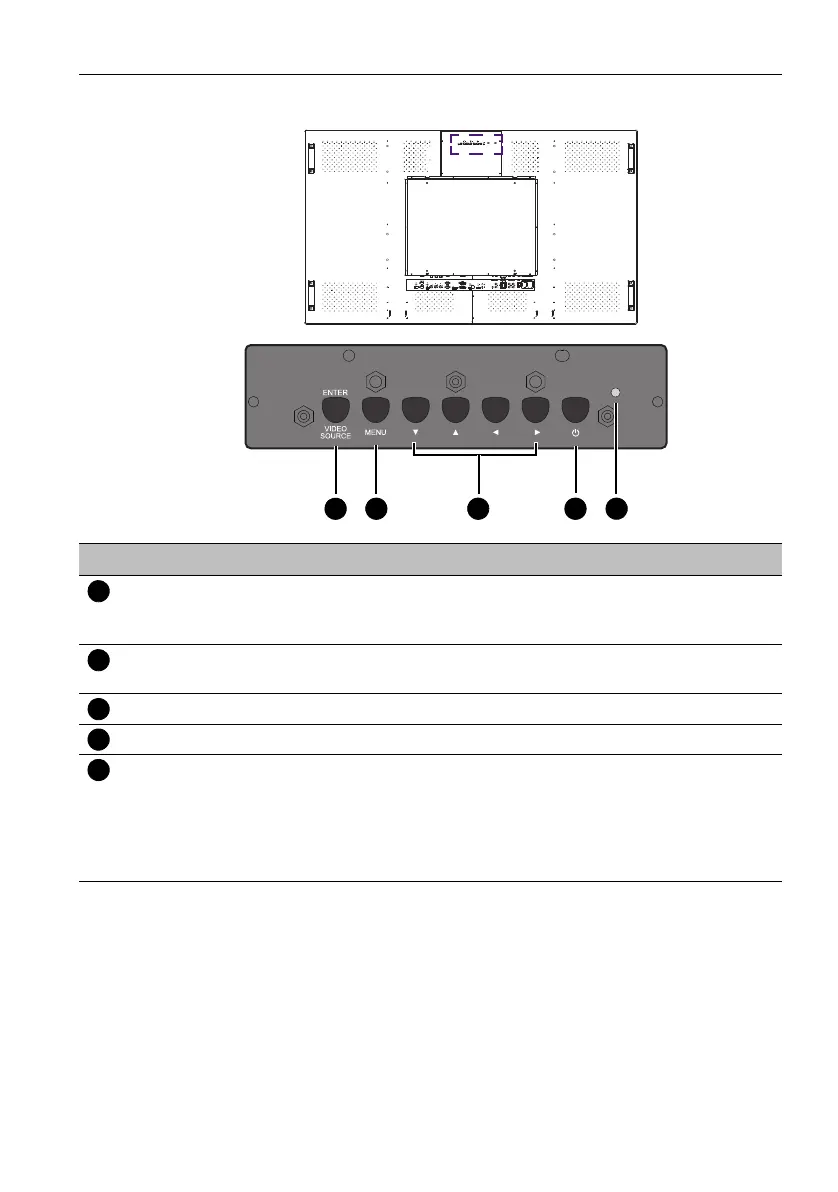 Power indicator Indicates the power status of the display: