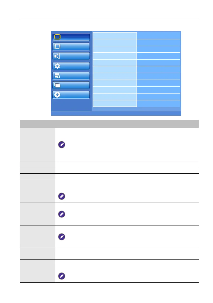 Sharpness Adjusts the image sharpness when Picture mode is set to User.