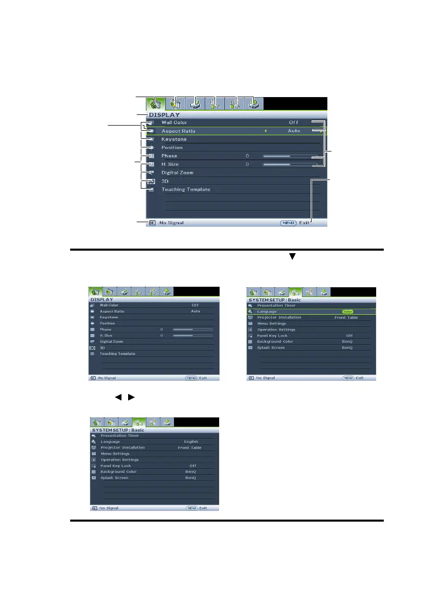 The projector is equipped with On-Screen Display (OSD) menus for making various