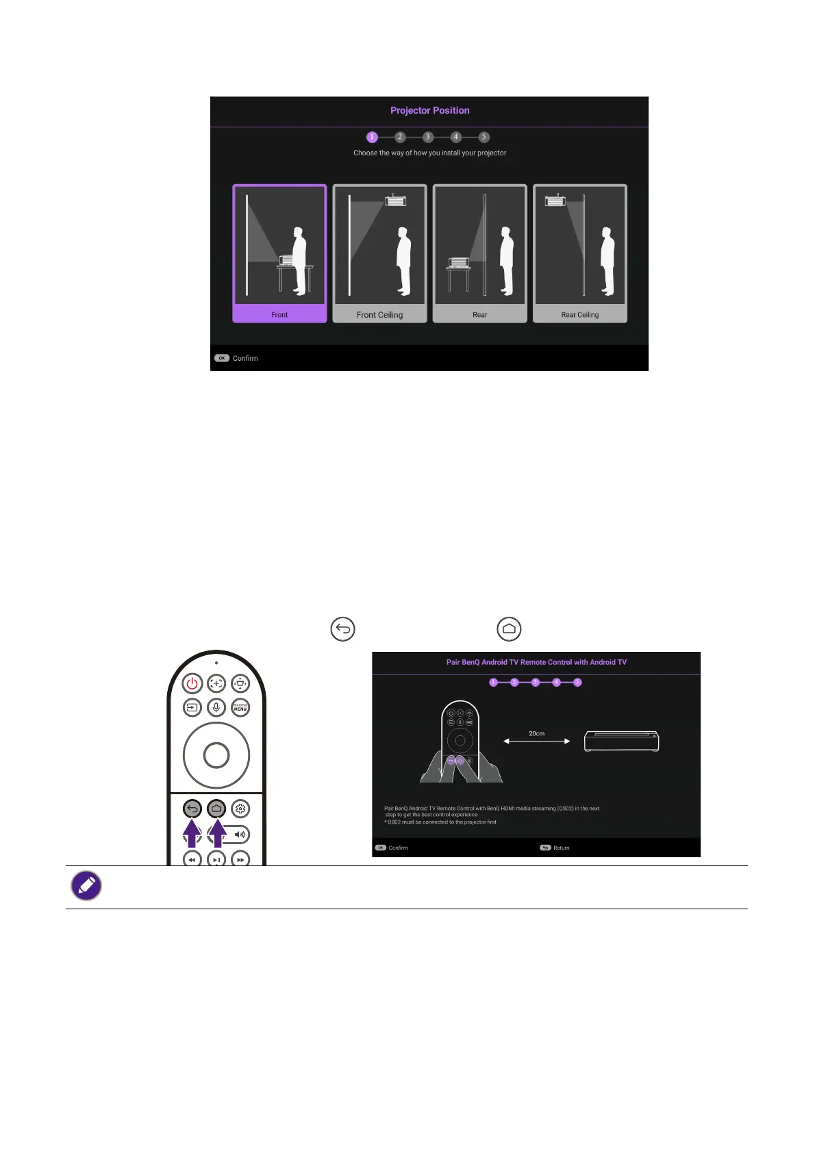 If you have not previously paired the projector’s remote control to the QS02 Android TV