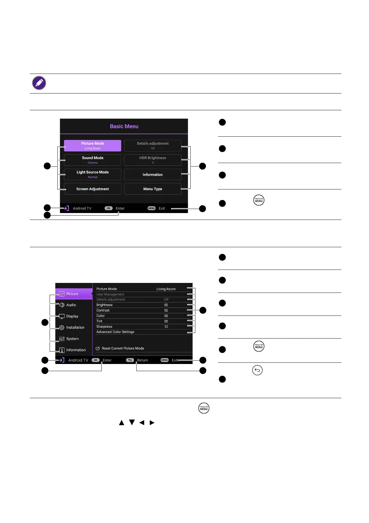 The projector is equipped with On-Screen Display (OSD) menus for making various