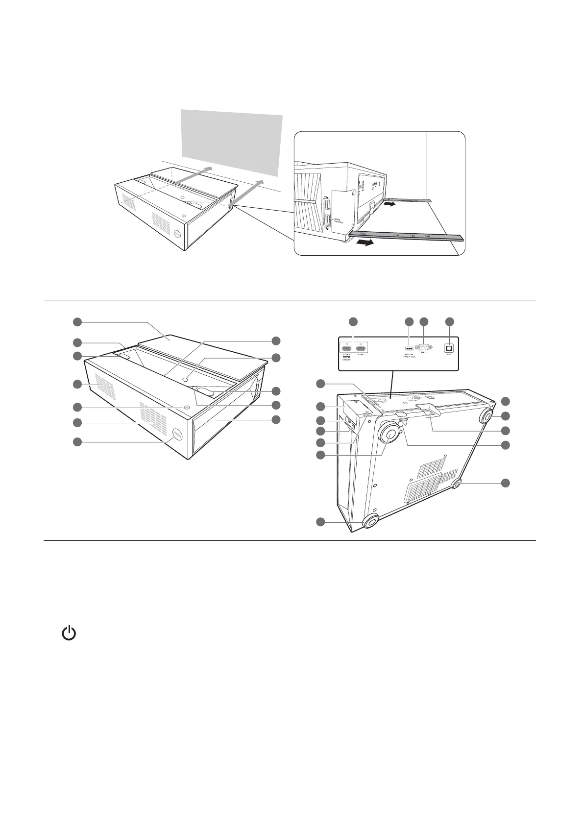 Two rulers can be pulled out from the rear of the projector to measure the projection distance