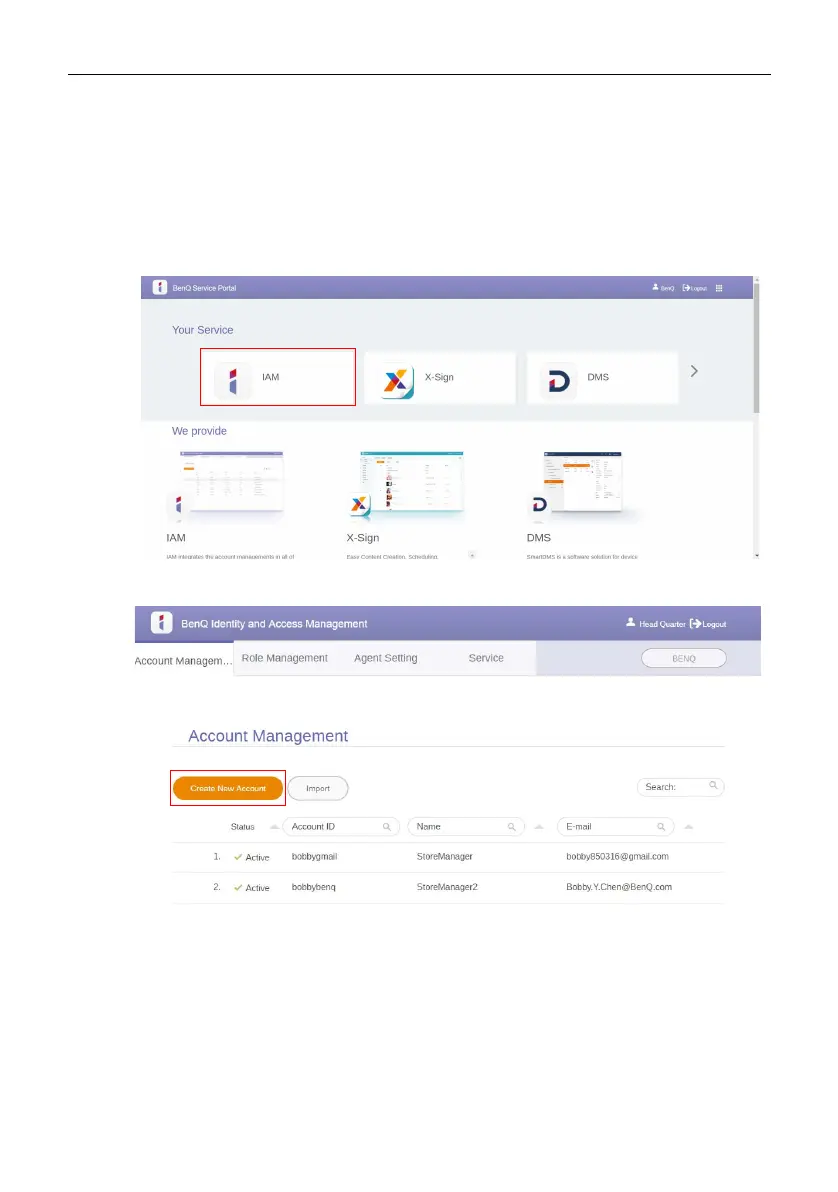 1. As an administrator to create a new account for regular users, go to BenQ Service