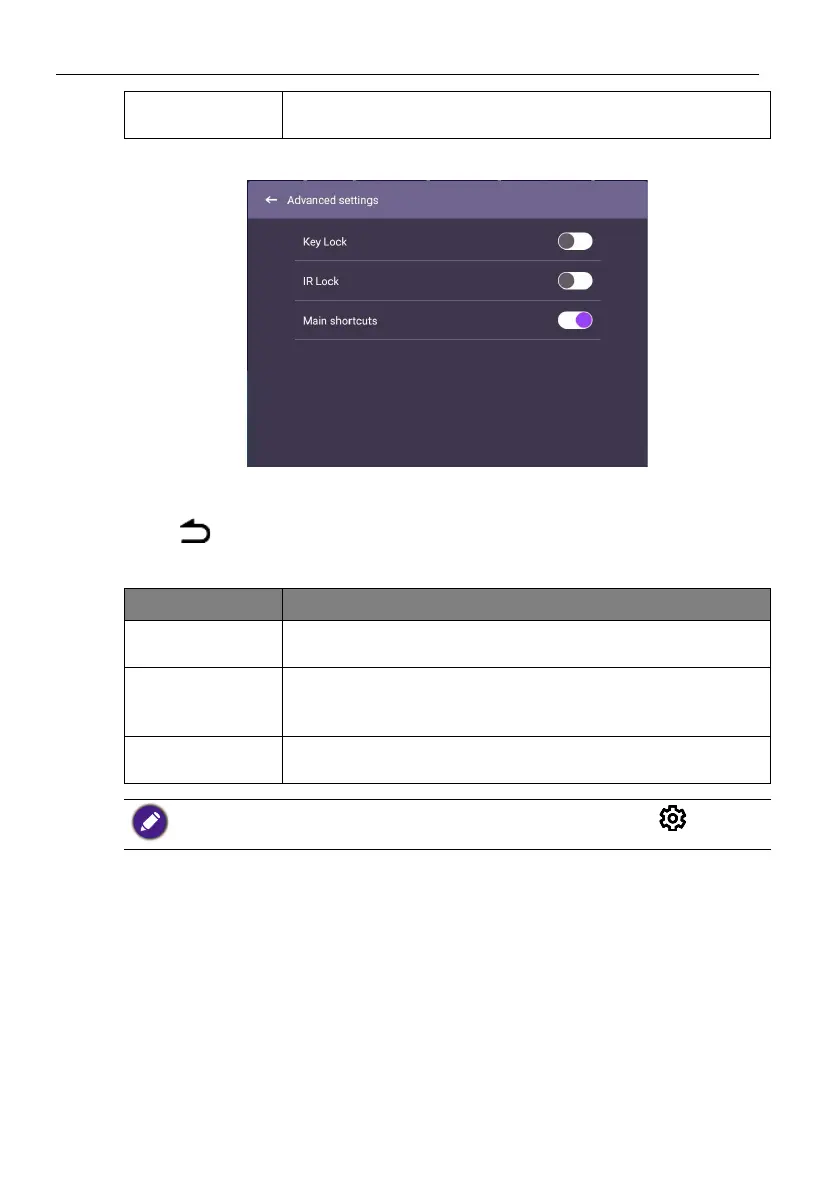 Main shortcuts Press OK on the remote control or click the switch to enable or