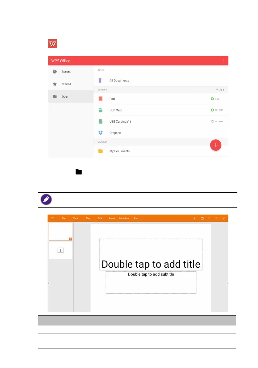 1. Tap Open ( ) on the left panel to browse and open a file located in either the dis-