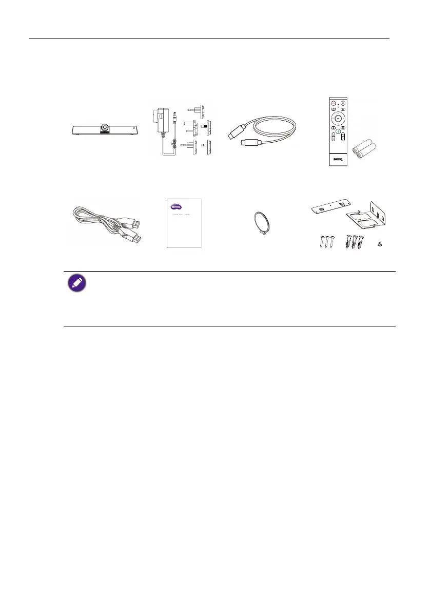 HDMI cable x 1 Quick start guide Camera cover x 1 Mounting kit