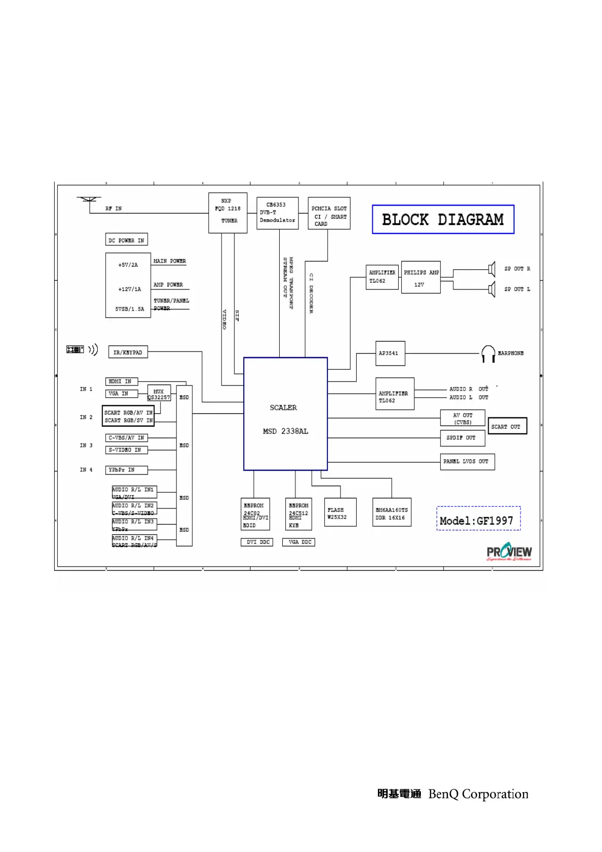 BenQ VM2221 - Level 2 Circuit Board and Standard Parts Replacement; Block Diagram