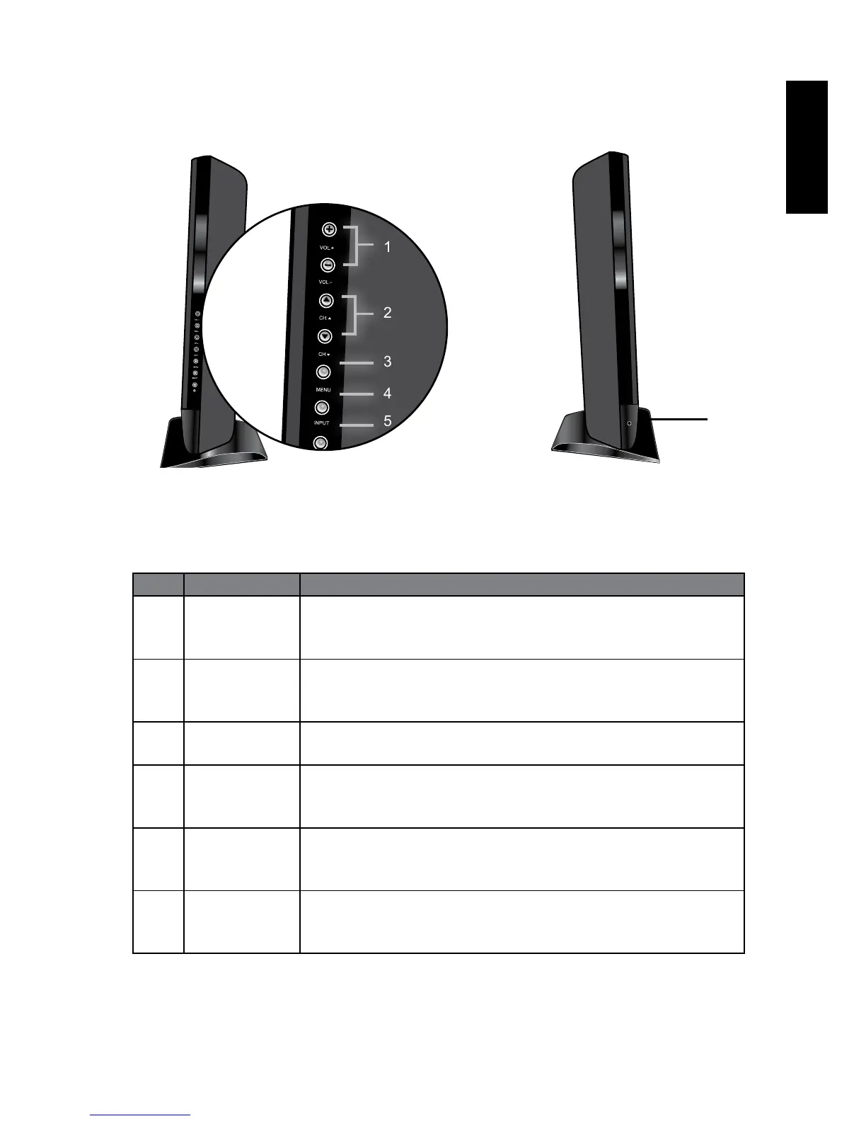 3 MENU button Displays the OSD (On-Screen Display) menu if not visible, or
