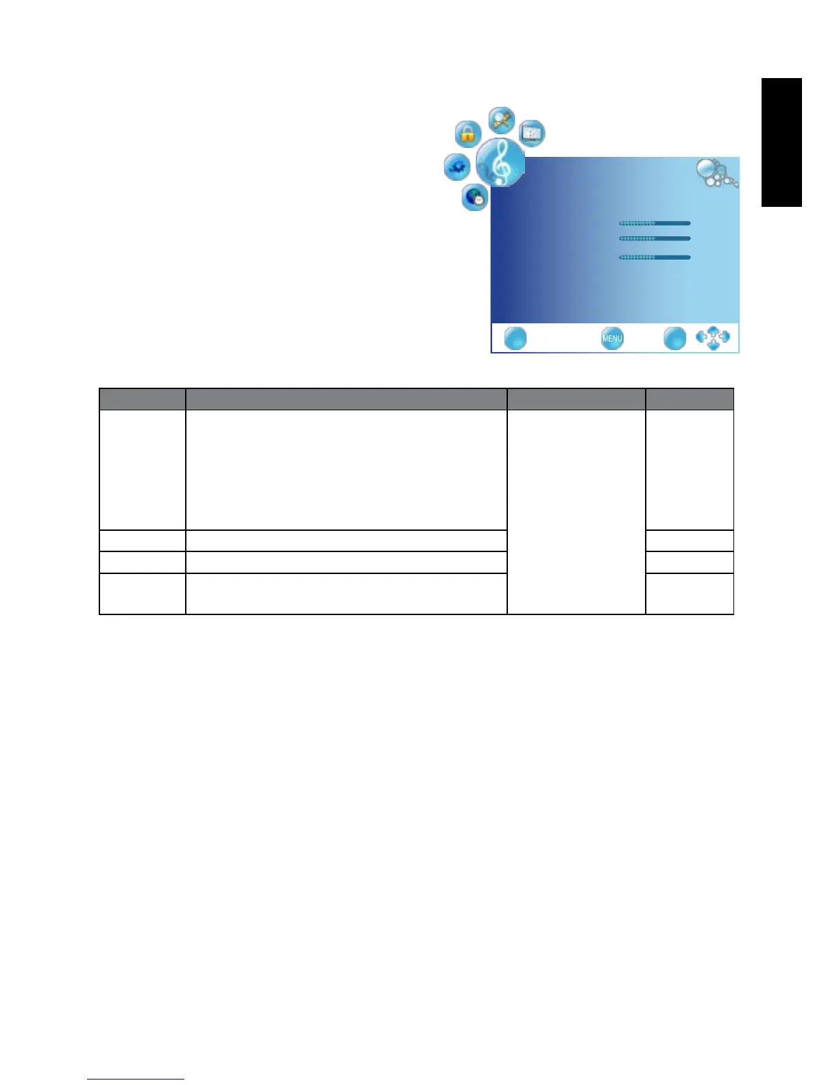 Treble Adjusts treble tones for the User Mode. 0 to 100