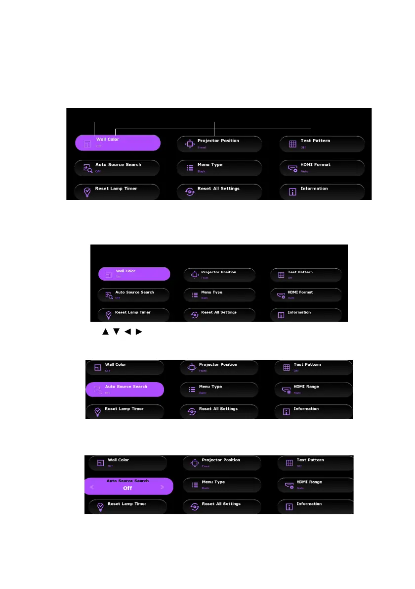 The projector is equipped with On-Screen Display (OSD) menus for making various