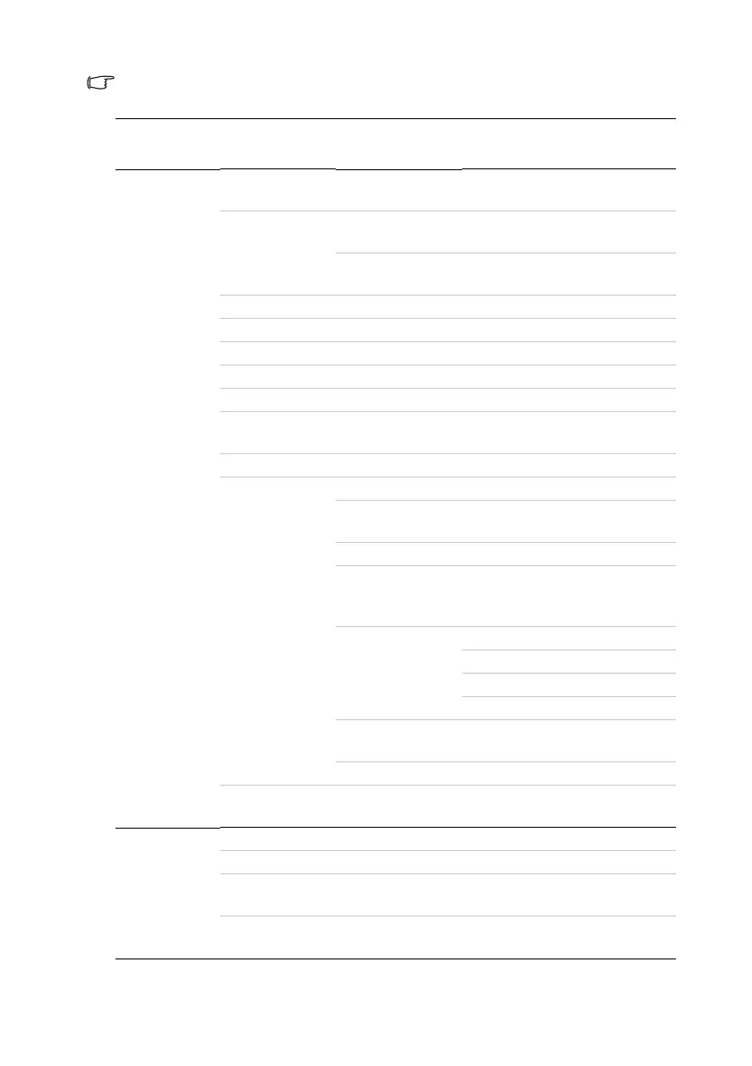 Supported functions in each Advanced menu vary by different input sources. The