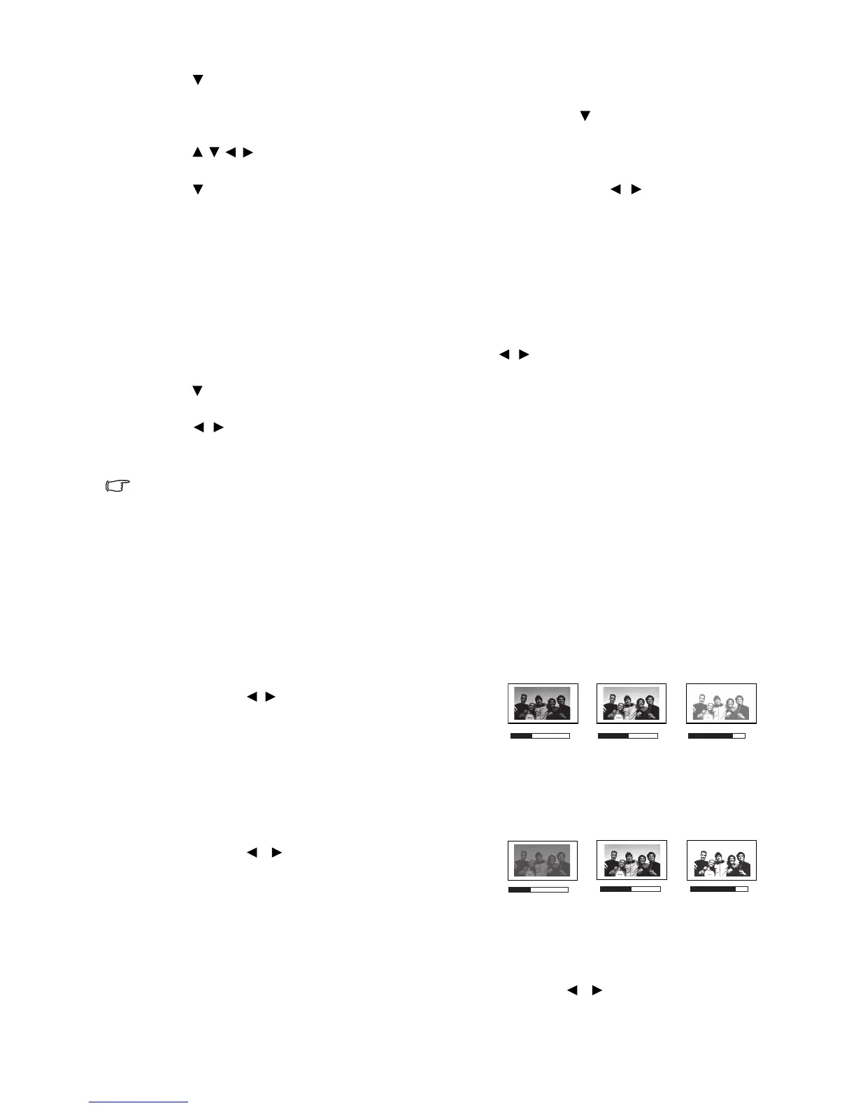 9. Press to select a sub-menu item to be changed and adjust the value with / . See "Fine-tuning