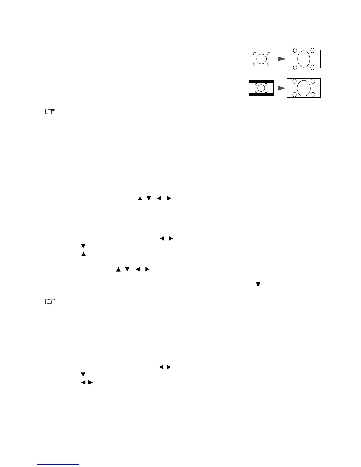 directional arrows ( , , , ) on the projector or remote control to navigate the picture.