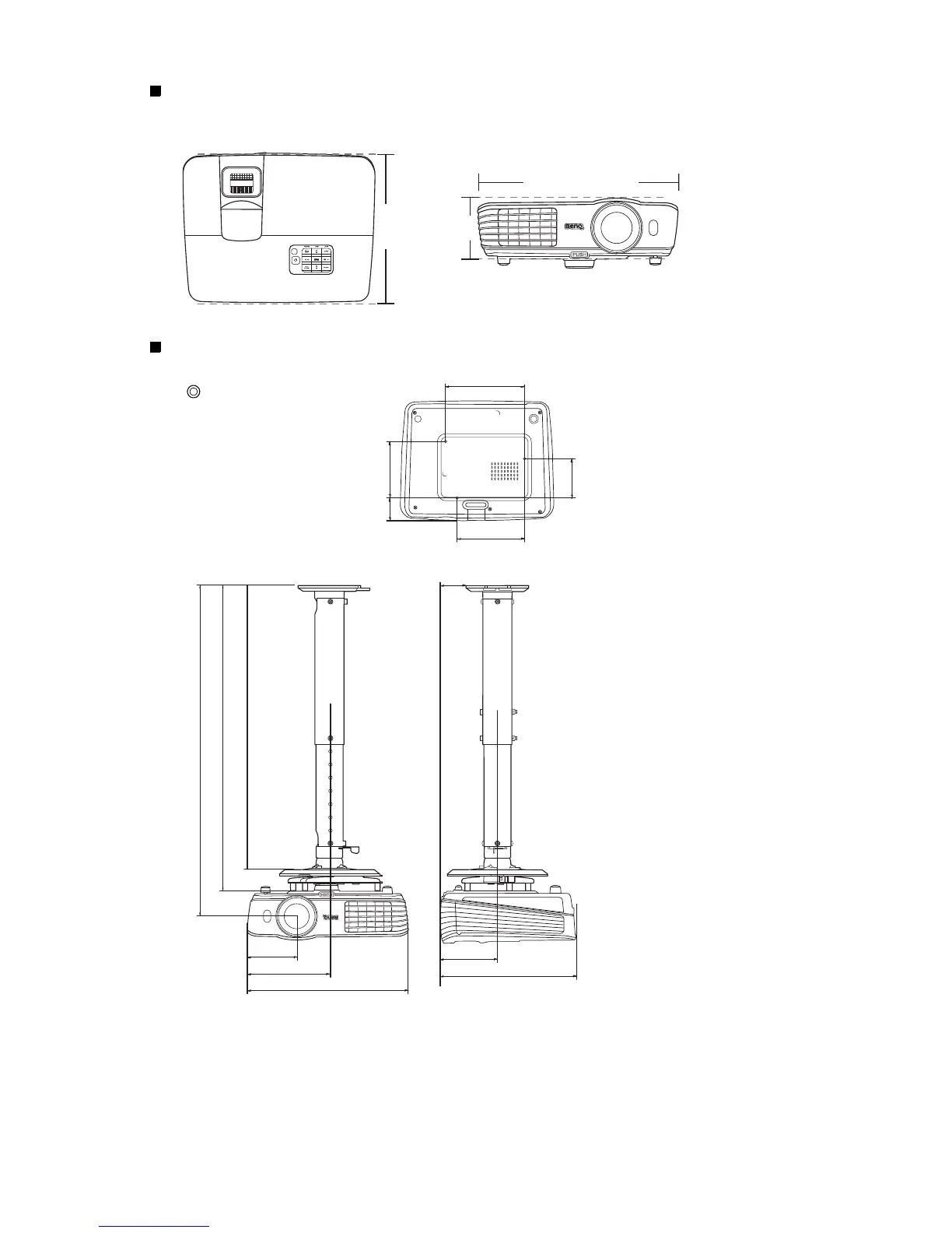 BenQ W1070 - Dimensions; Ceiling Mount Installation