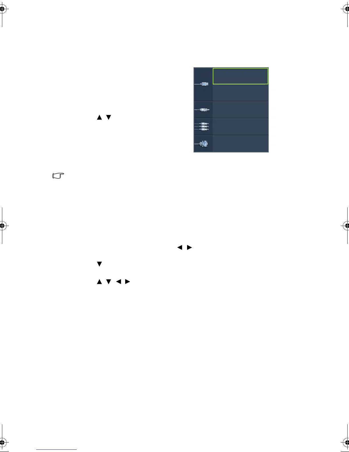 2. Press / until your desired signal is