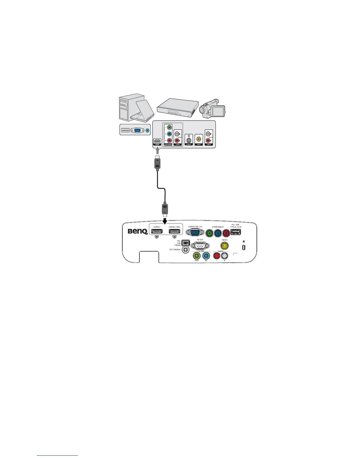 between the projector and HDMI devices.