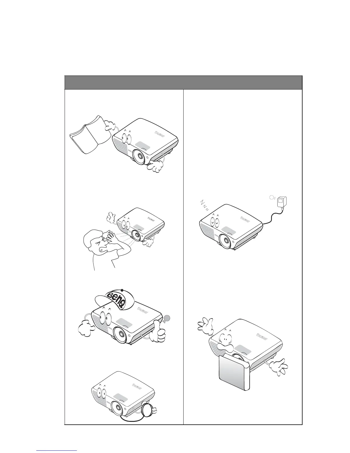 6. Do not block the projection lens with
