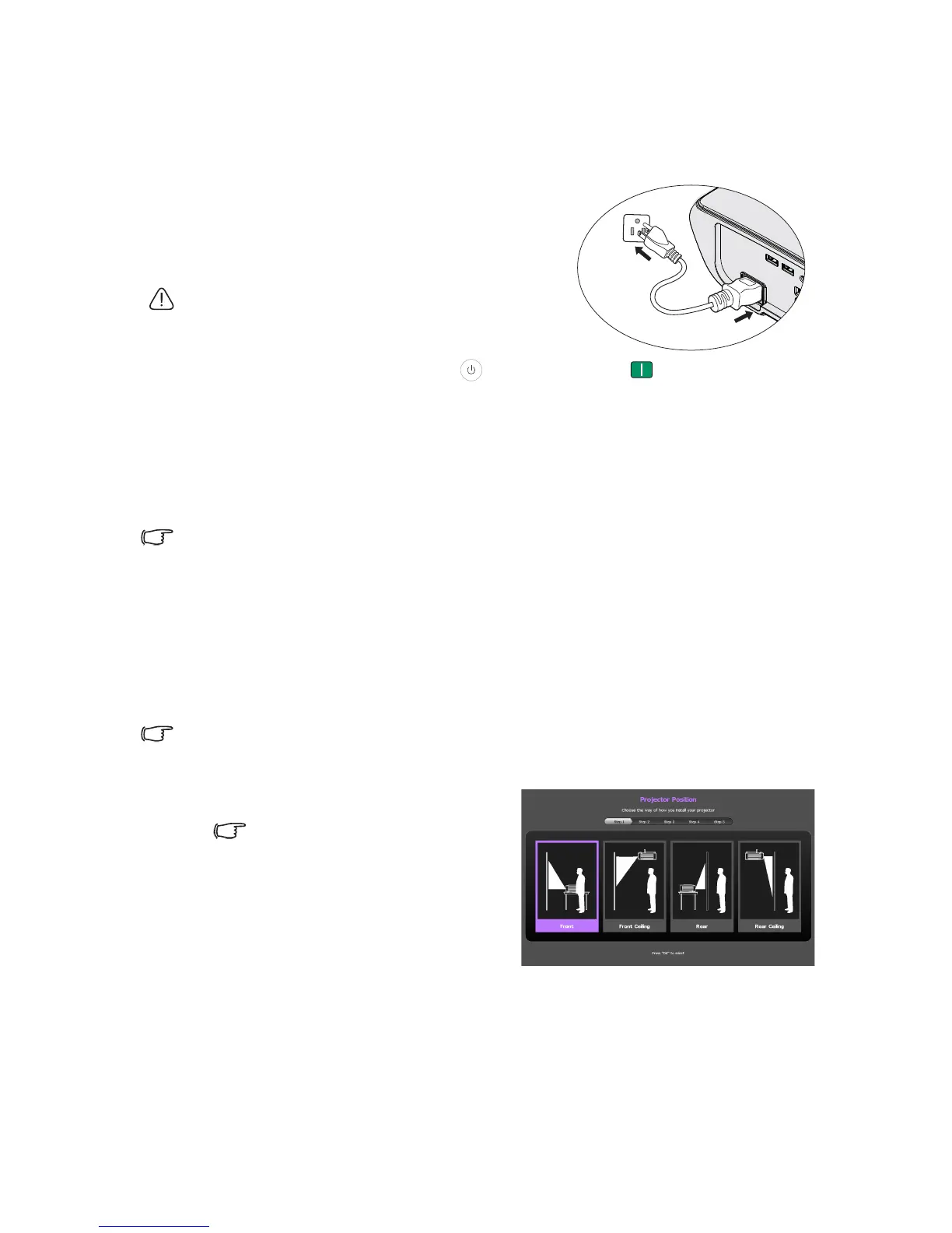 Starting up the projector