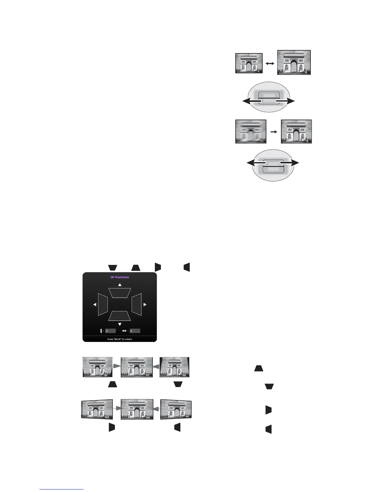 Press ▲/, ▼/, ◄/ or ►/ to display the 2D Keystone window.