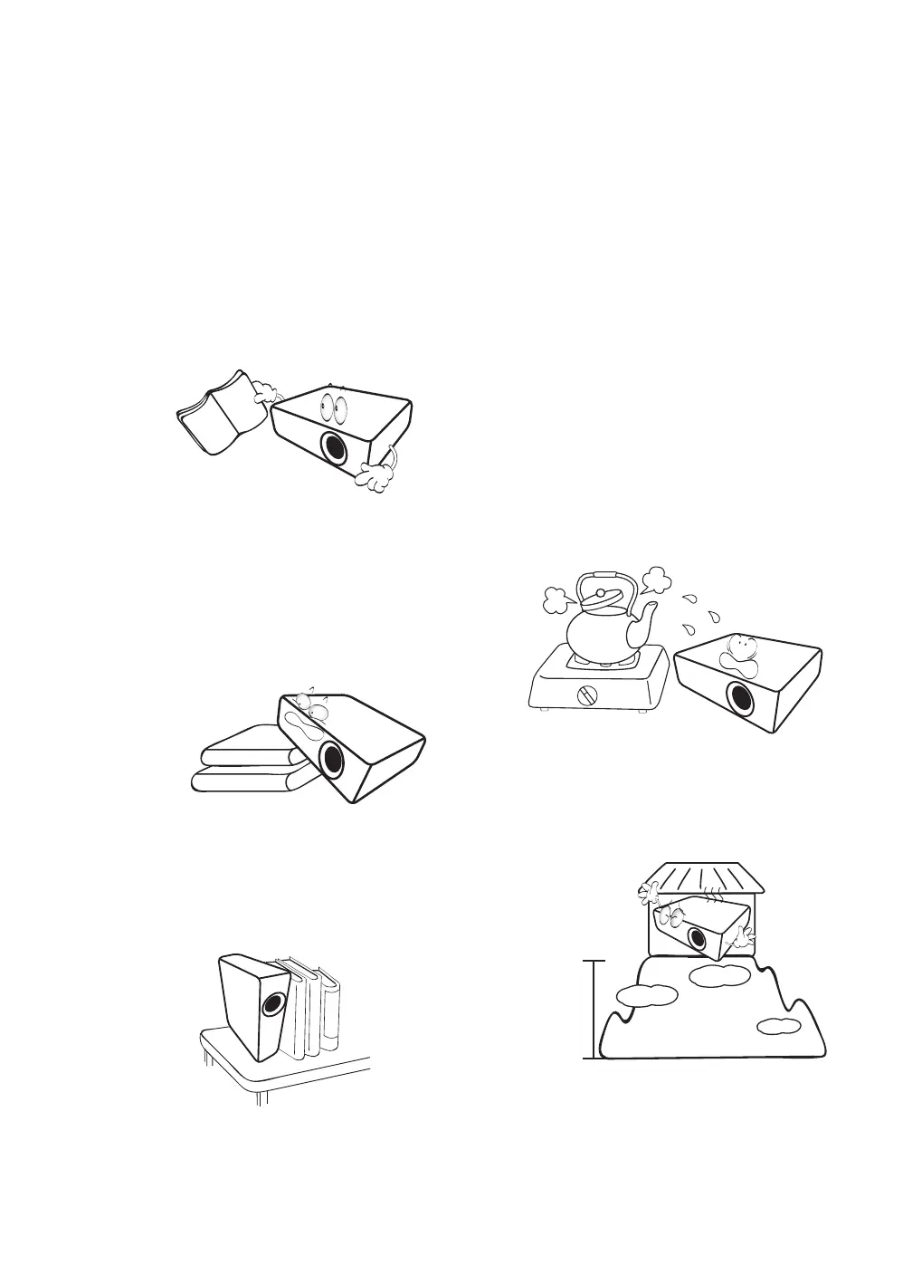4. Do not place the projector in any of the