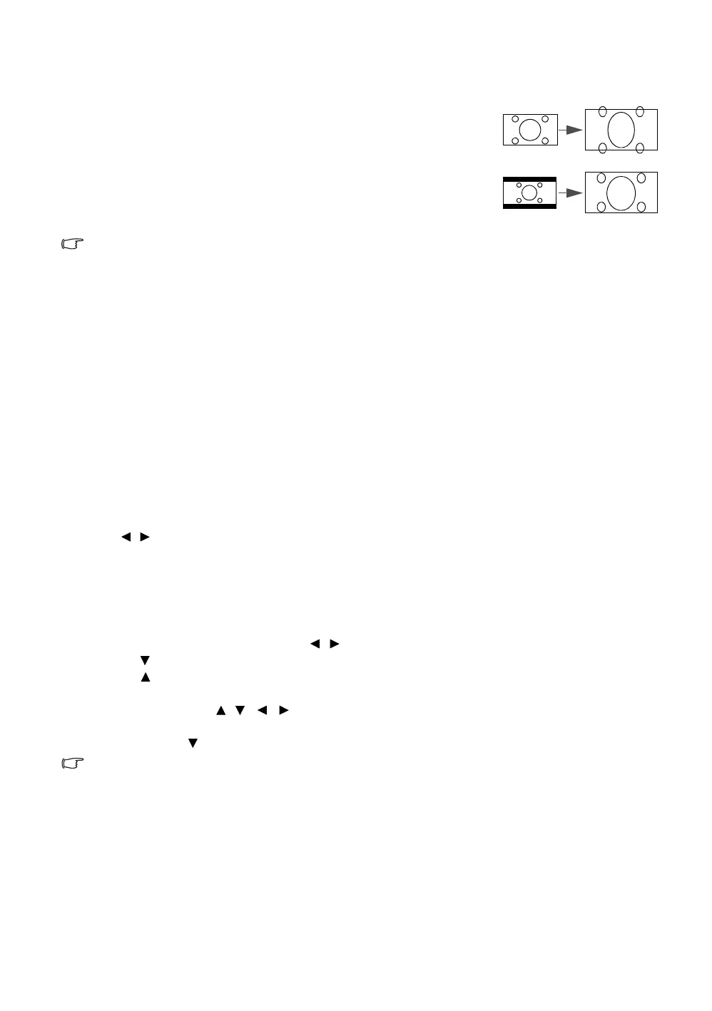 directional arrows ( , , , ) on the projector or remote control to navigate the picture.
