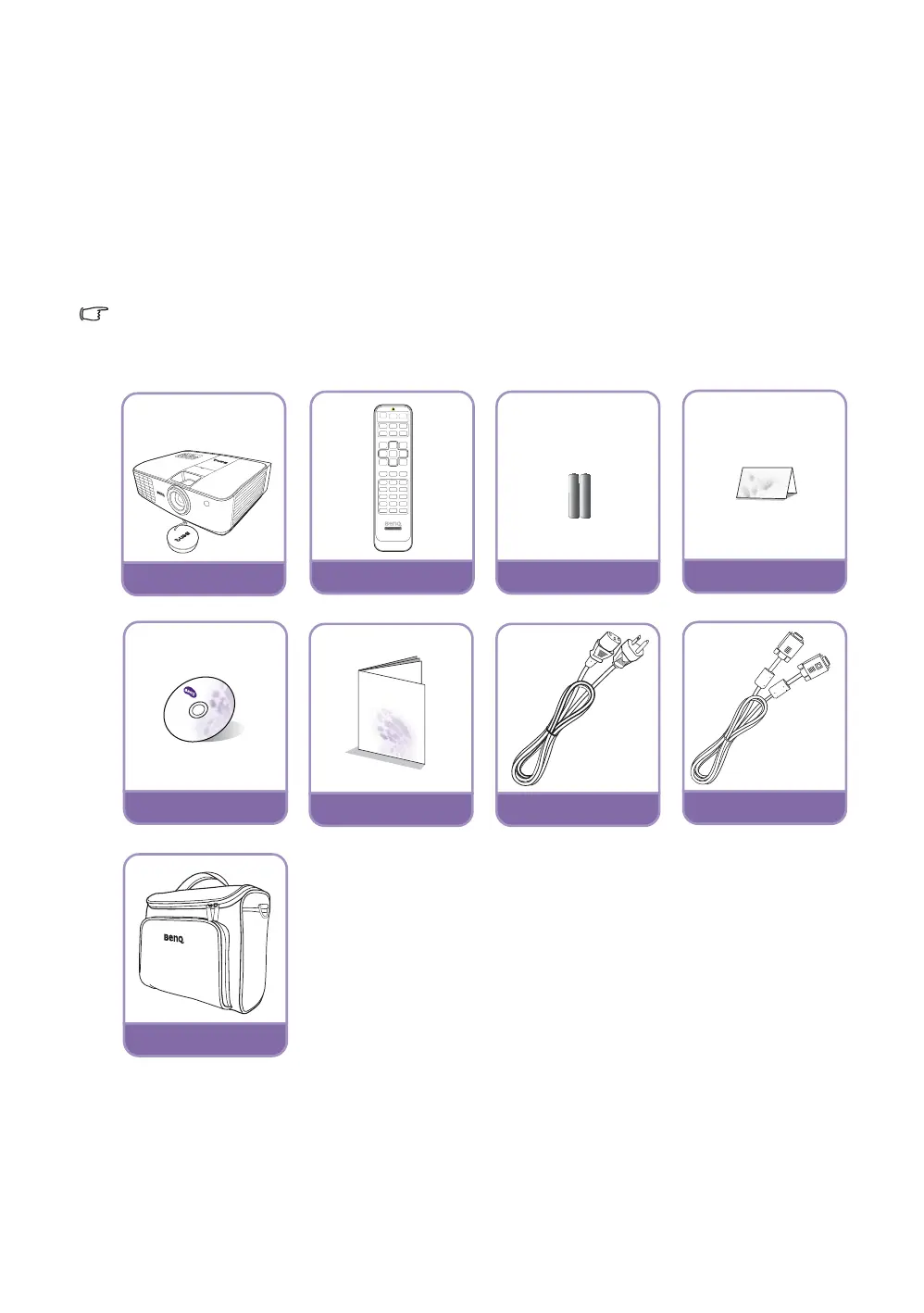 Carefully unpack and verify that you have the items below. Some of the items may not be available