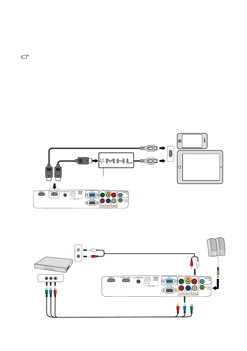 After connections, switch to the HDMI2/MHL input source. To switch input signal, see Selecting an