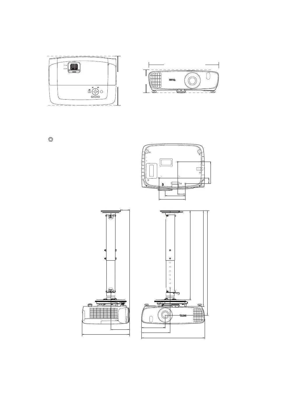 BenQ W2000 - Dimensions; Ceiling Mount Installation