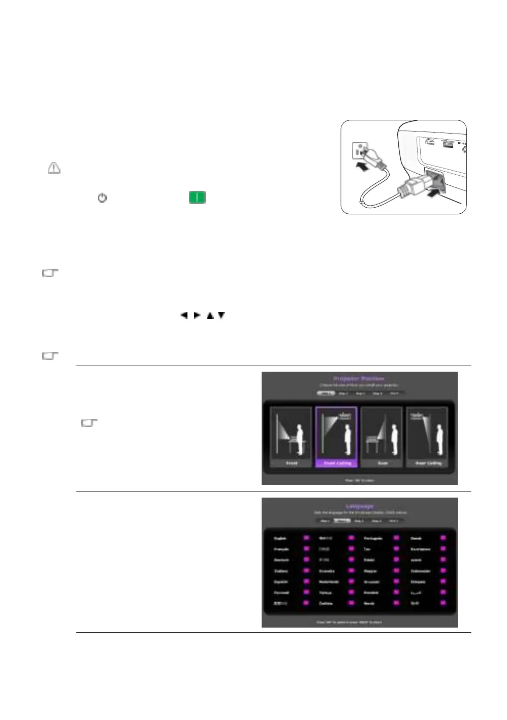 If this is the first time you turn on the projector, the setup wizard appears to guide you through